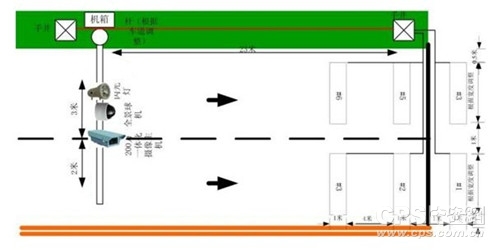 线圈检测方式在主干道上,两车道设置1个200万一体化高清摄像机做为车辆抓拍作用;每个方向两车道安装1个闪光灯,闪光灯与摄像机的水平安装距离3米,摄像机、闪光灯安装在同一杆上,安装高度6米;每个路口设置1台200万像素的1080P的高清网络球机作为全景摄像点(部分路段需要2个高清球作为全景监控);摄像机检测区域距离摄像机23米。
