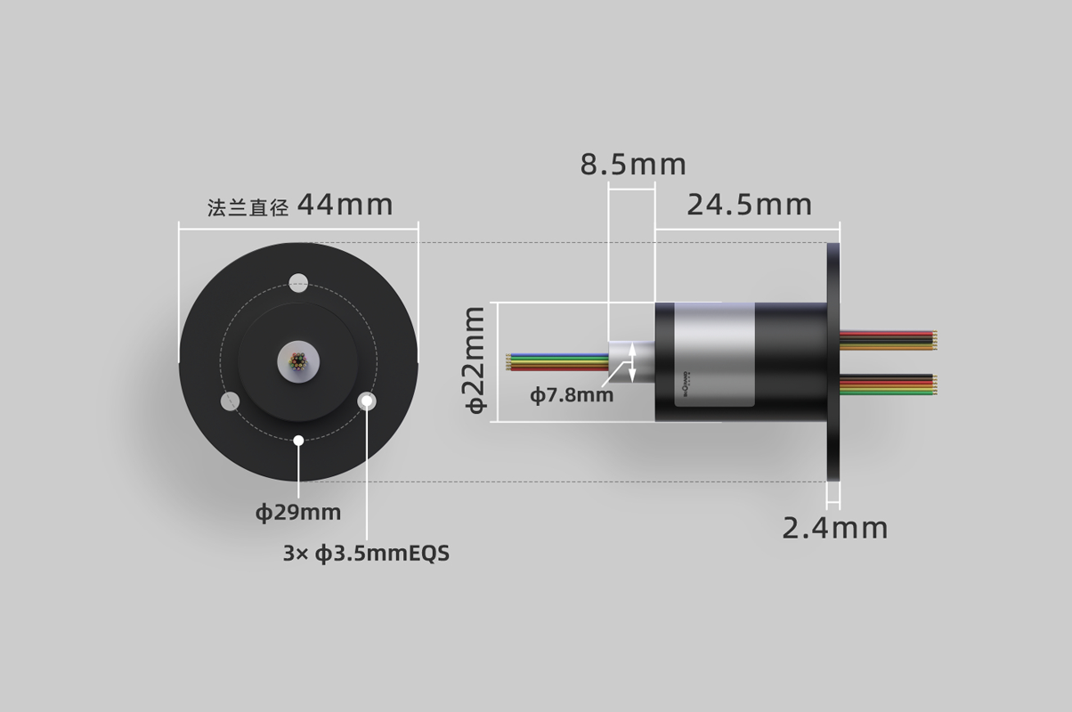 产品说明:帽式滑环是对滑环主体外套上带有安装法兰,每环最大电流通常在2安培左右的一系列导电滑环的统称,因主体外观像帽子而得名。帽式滑环内部设计尺寸紧凑,外形体积小,方便安装,主体直径通常在φ12.5mm~φ50mm之间,环路数可在100多路内自由选择。转轴环道采用精密镜面加工配合国内领先的贵金属镀层超硬金电镀处理工艺,刷丝同样采用贵金属镀金处理,接触点金对金接触,保证了极低的表面接触电阻和耐磨性能,具备转动力矩低、损电气噪音小、免维护等特点,被广泛应用在传输微弱电流、控制信号(电源,视频,控制,传感,以太网)的中小系统中。